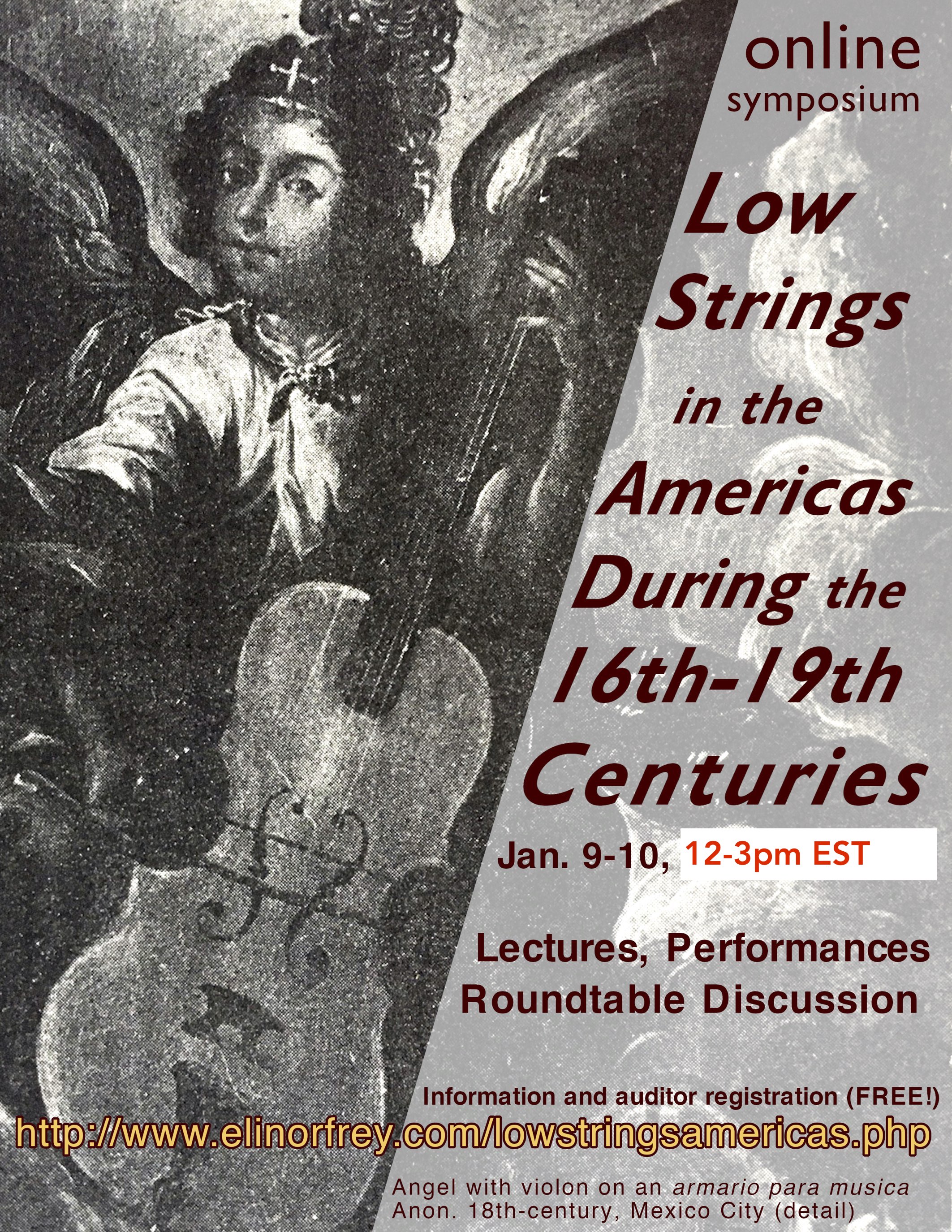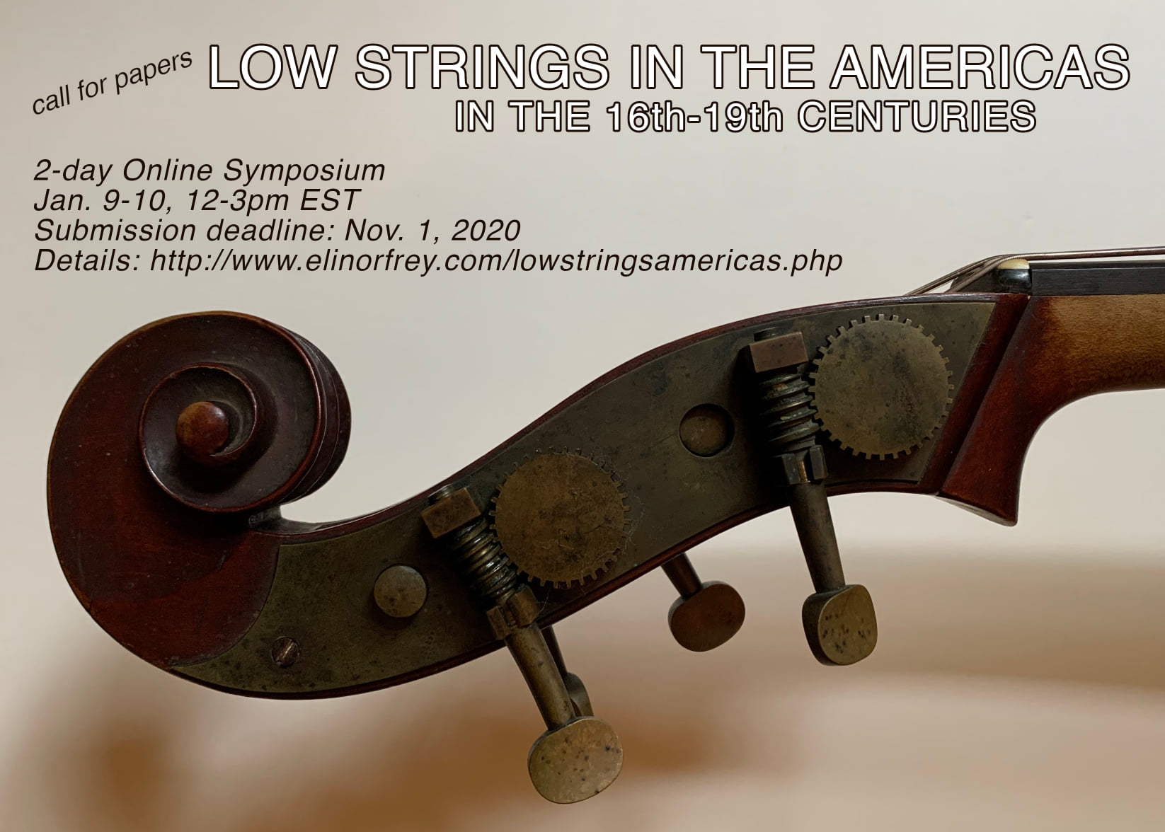 European stringed instruments are reported to have been played in the Americas within decades of the first arrivals by Spanish colonists. By the seventeenth century, various of the bass members of European-style stringed instruments were in use across the Americas, having been imported from Europe or made locally by colonial and Indigenous craftsmen. "Low Strings in the Americas in the 16th-19th Centuries” is an online symposium that will showcase recent research on the presence and/or use of low stringed instruments during the first four centuries of European occupation of the Americas. By "low strings" we refer to instruments that sound primarily in the "8-ft" and "16-ft" range, including (but not limited to!) cellos, viols, violas da gamba, basses, violones, bajos, violóns, etc. Proposals can address the presence and/or use of such instruments in any musical or cultural contexts with connections to the geographic and historical boundaries suggested by our title.